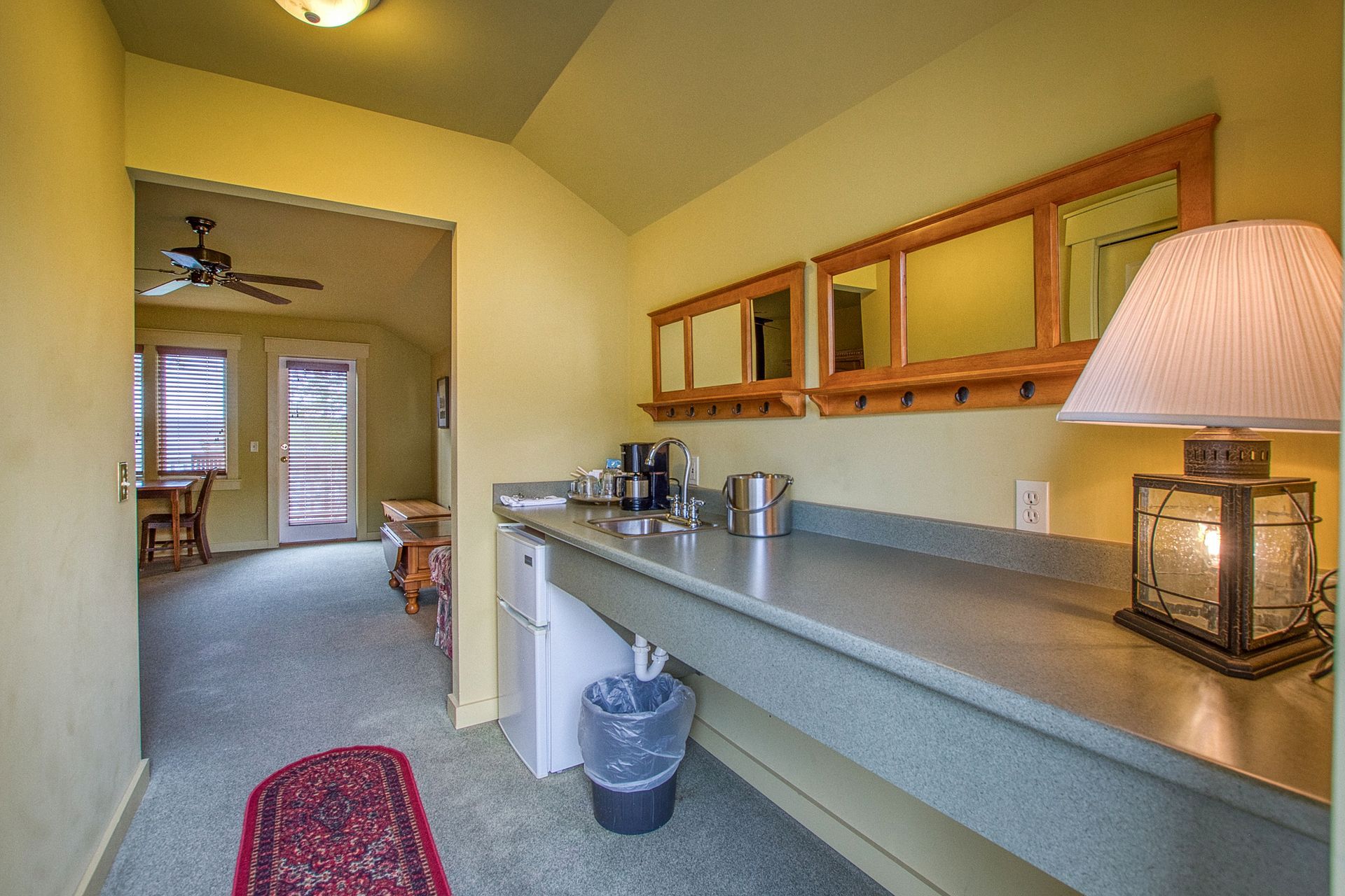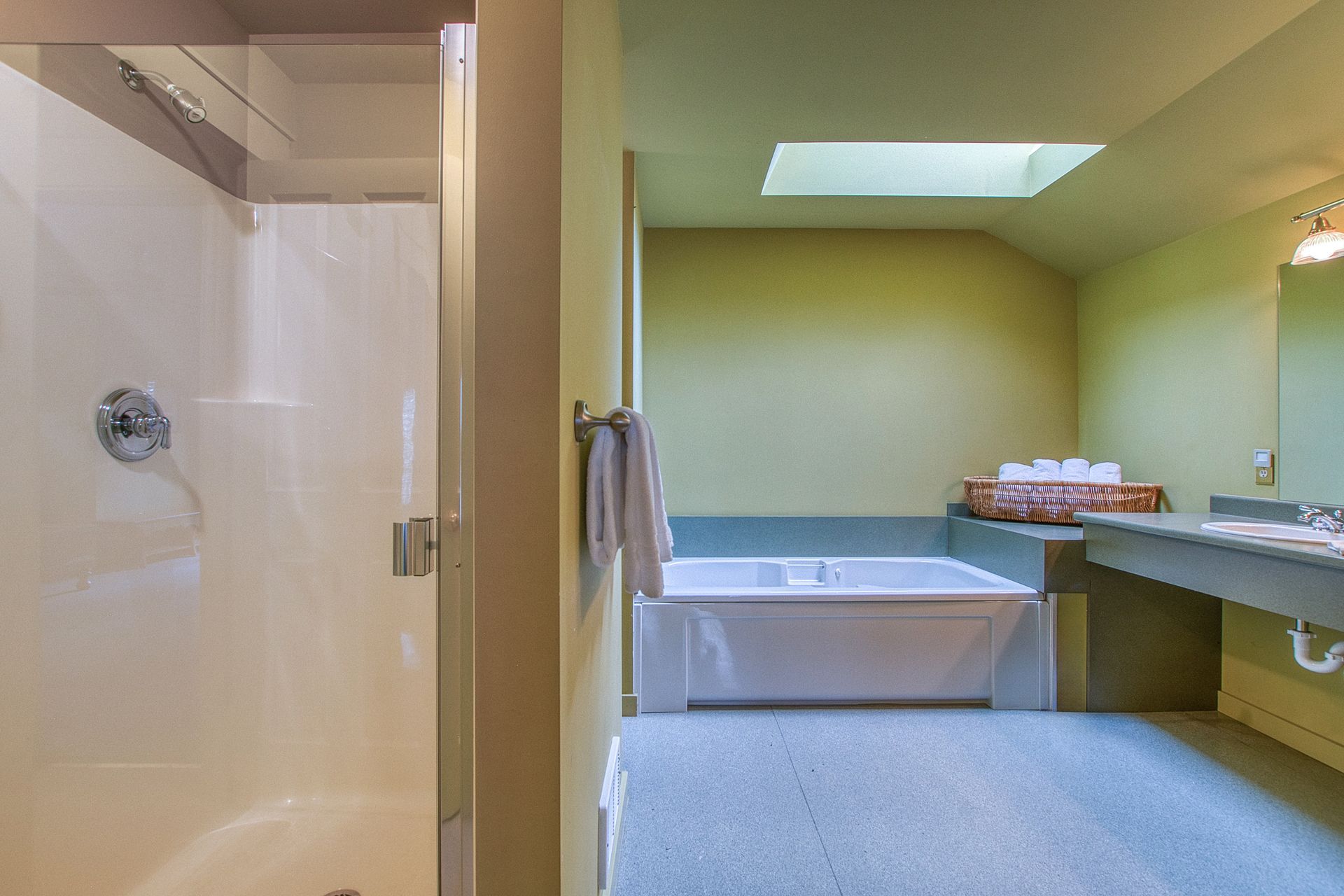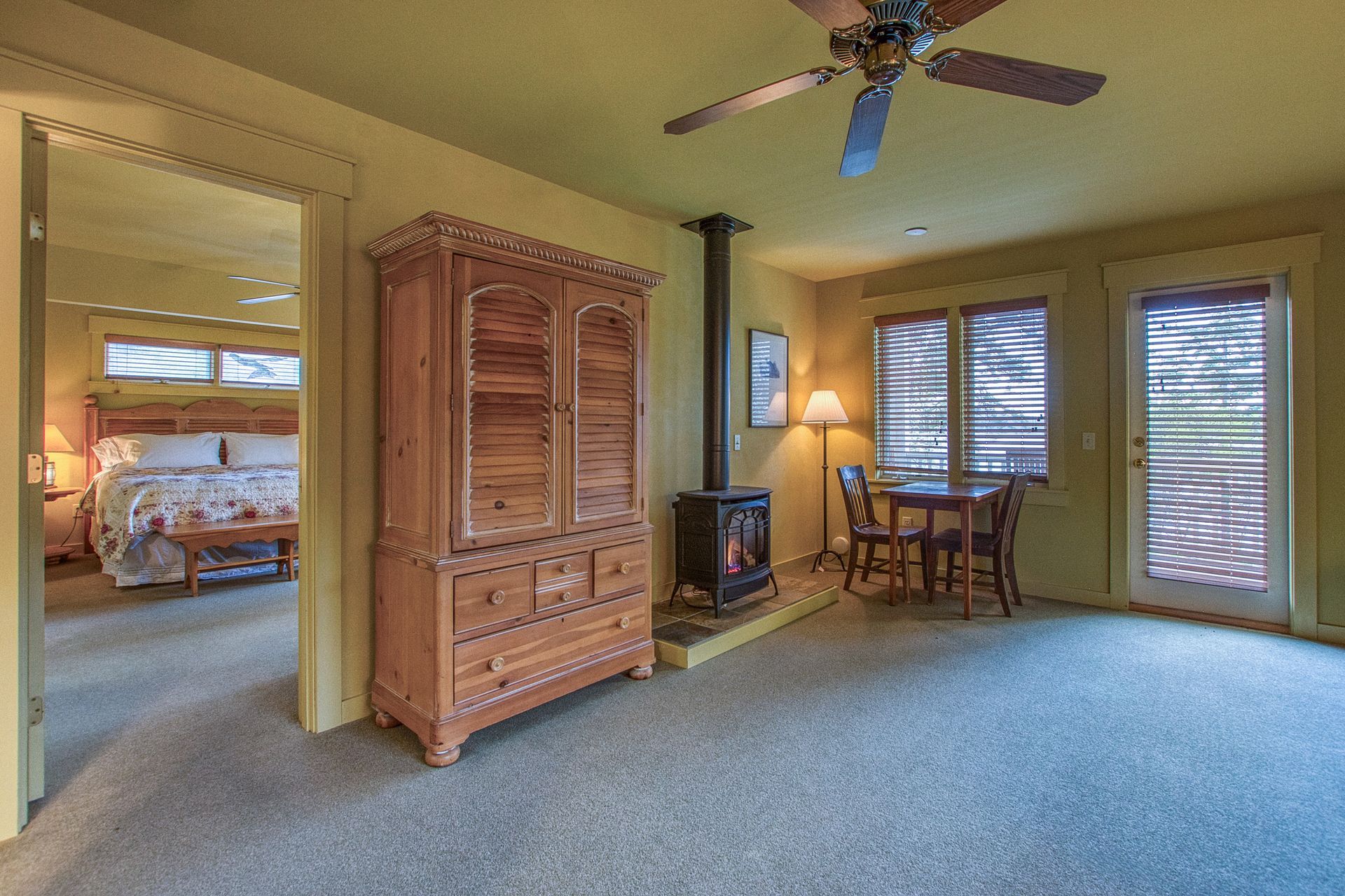 The Suite has separate living and sleeping areas and is in our quiet pond side building. The suite also has a secluded large balcony with terrific water views. The Queen Sofa Sleeper gives the option of sleeping an extra person or two in the suite.